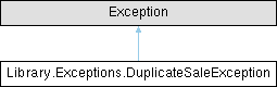 Inheritance diagram for Library.Exceptions.DuplicateSaleException:
