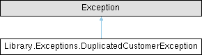 Inheritance diagram for Library.Exceptions.DuplicatedCustomerException:
