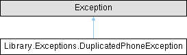 Inheritance diagram for Library.Exceptions.DuplicatedPhoneException: